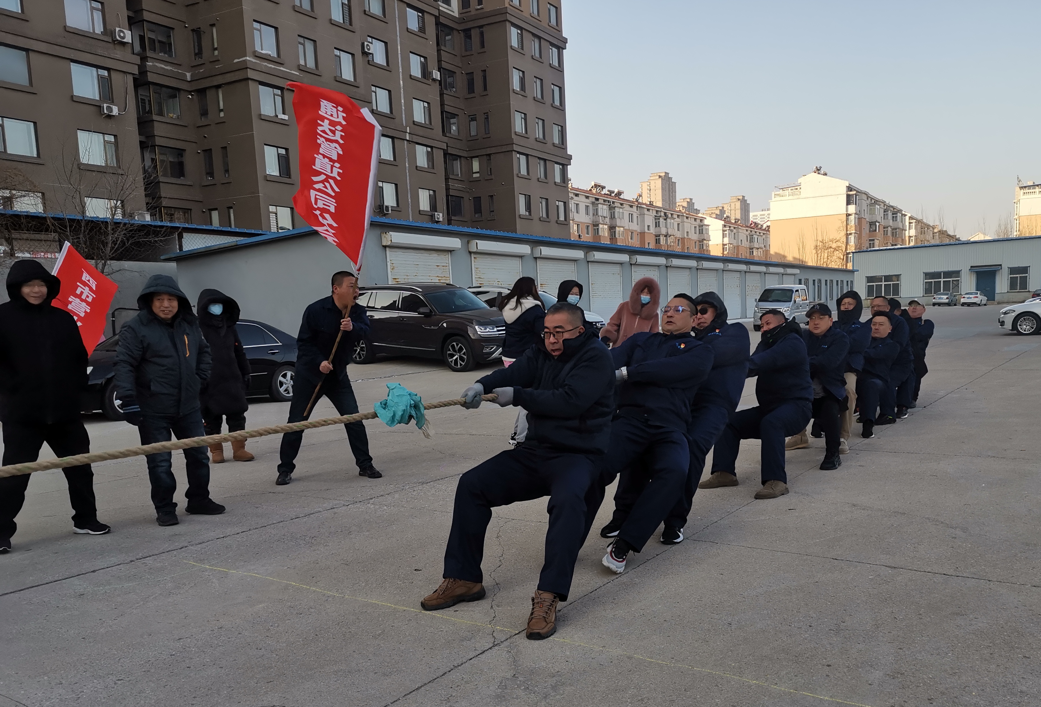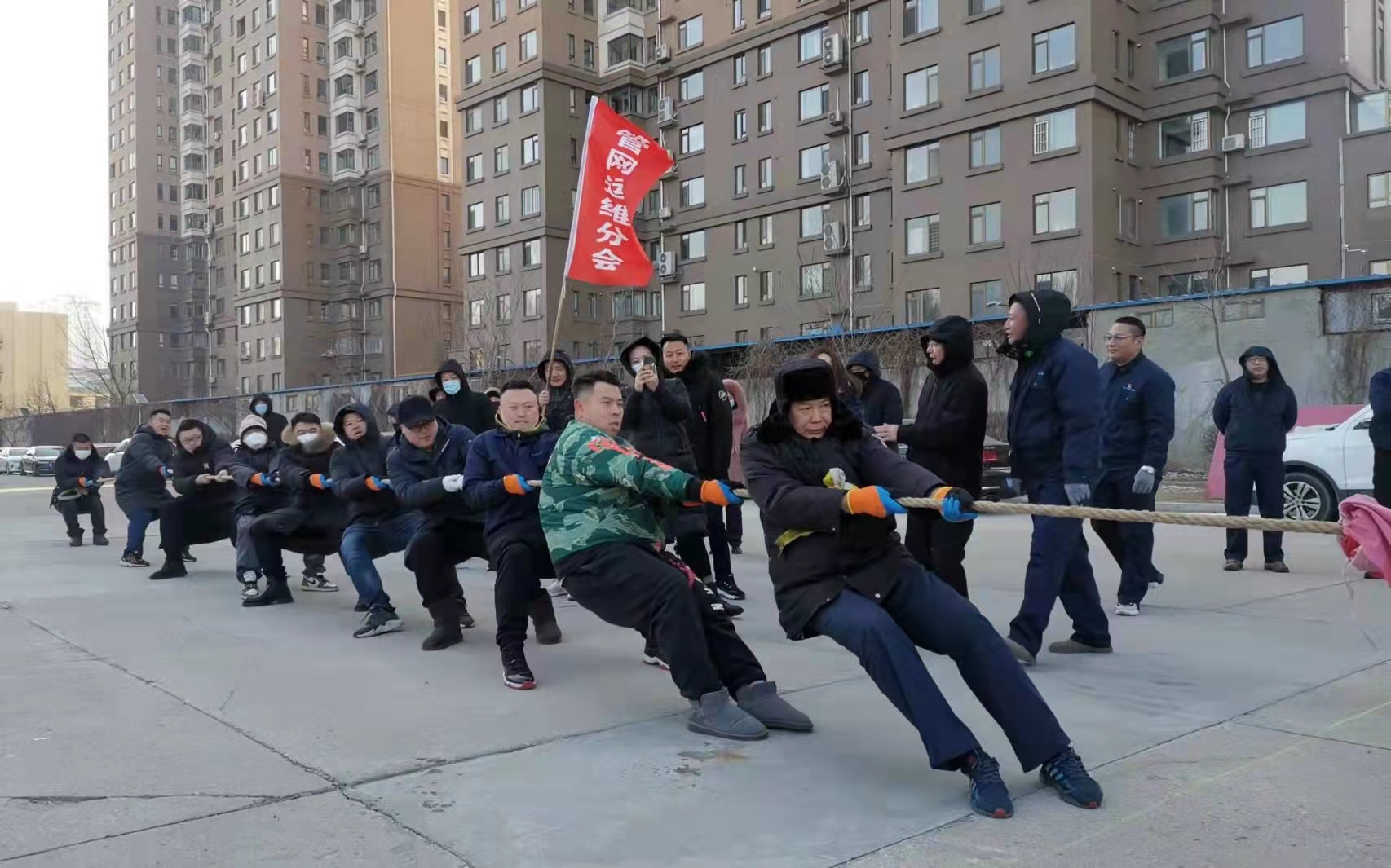 1月26日上午8:20分,集團公司領(lǐng)導(dǎo)與基層工會干部和會員近400人,集聚于公司樓前廣場,相繼展開了“力拔山兮拔大河”和“愛的魔力傳遞”兩項團體活動。“力拔山兮拔大河”:各隊秉著“友誼第一,比賽第二”的原則,當(dāng)比賽的哨聲一響起,雙方隊員們使出渾身力氣把繩子向后拉,繩子中間的紅繩左右搖擺。兩邊隊員都整齊地往后倒、向后退,旗手、安全員也在隊伍旁邊助陣加油,場上助力吶喊聲浪如潮……“愛的魔力傳遞”體驗的是個人積極與同伴合作,多人通過轉(zhuǎn)圈圈將紅布條纏到隊友身上,依次接力,分享趣味行走的快樂。場上隊員集中心智、同心協(xié)力,場外觀眾加油助威、歡呼吶喊,氣氛熱烈。在各參賽隊的努力下,“力拔山兮拔大河”前四名分別是:管網(wǎng)運維中心、站前營業(yè)分公司、通達管道工程有限公司、第六凈水廠四個代表隊。“愛的魔力傳遞”前四名分別是:機關(guān)三分會、通達管道工程有限公司、管網(wǎng)運維中心、路南水廠四個代表隊。