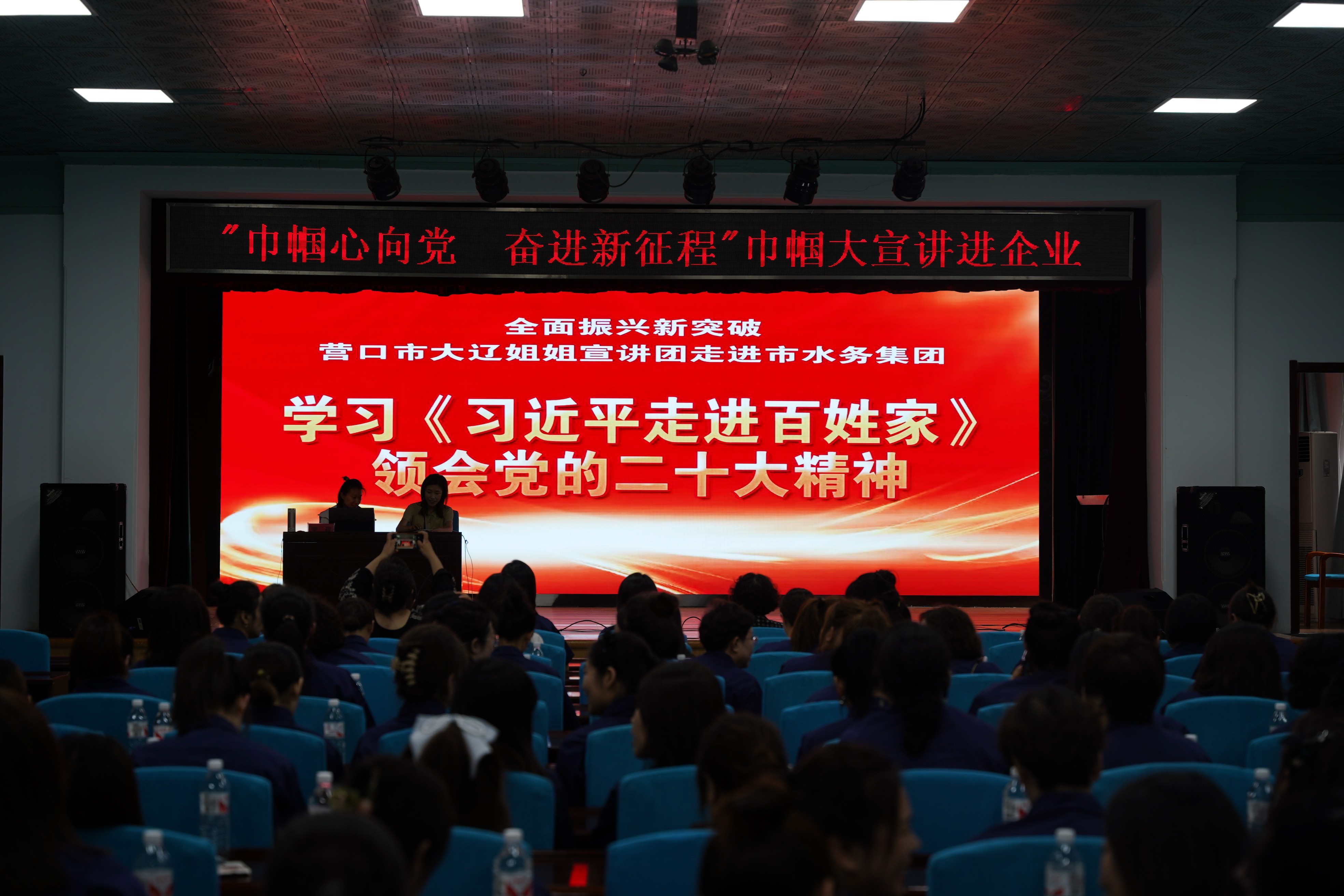 為深入學(xué)習(xí)宣傳貫徹黨的二十大精神,做好學(xué)習(xí)貫徹習(xí)近平新時(shí)代中國(guó)特色社會(huì)主義思想主題教育預(yù)熱升溫,6月29日上午,水務(wù)集團(tuán)與婦聯(lián)開(kāi)展共建活動(dòng),邀請(qǐng)大遼姐姐宣講團(tuán)成員、營(yíng)口市委黨校李程老師走進(jìn)企業(yè)開(kāi)展“巾幗心向黨 奮進(jìn)新征程”大宣講,100余名女職工參會(huì)。
