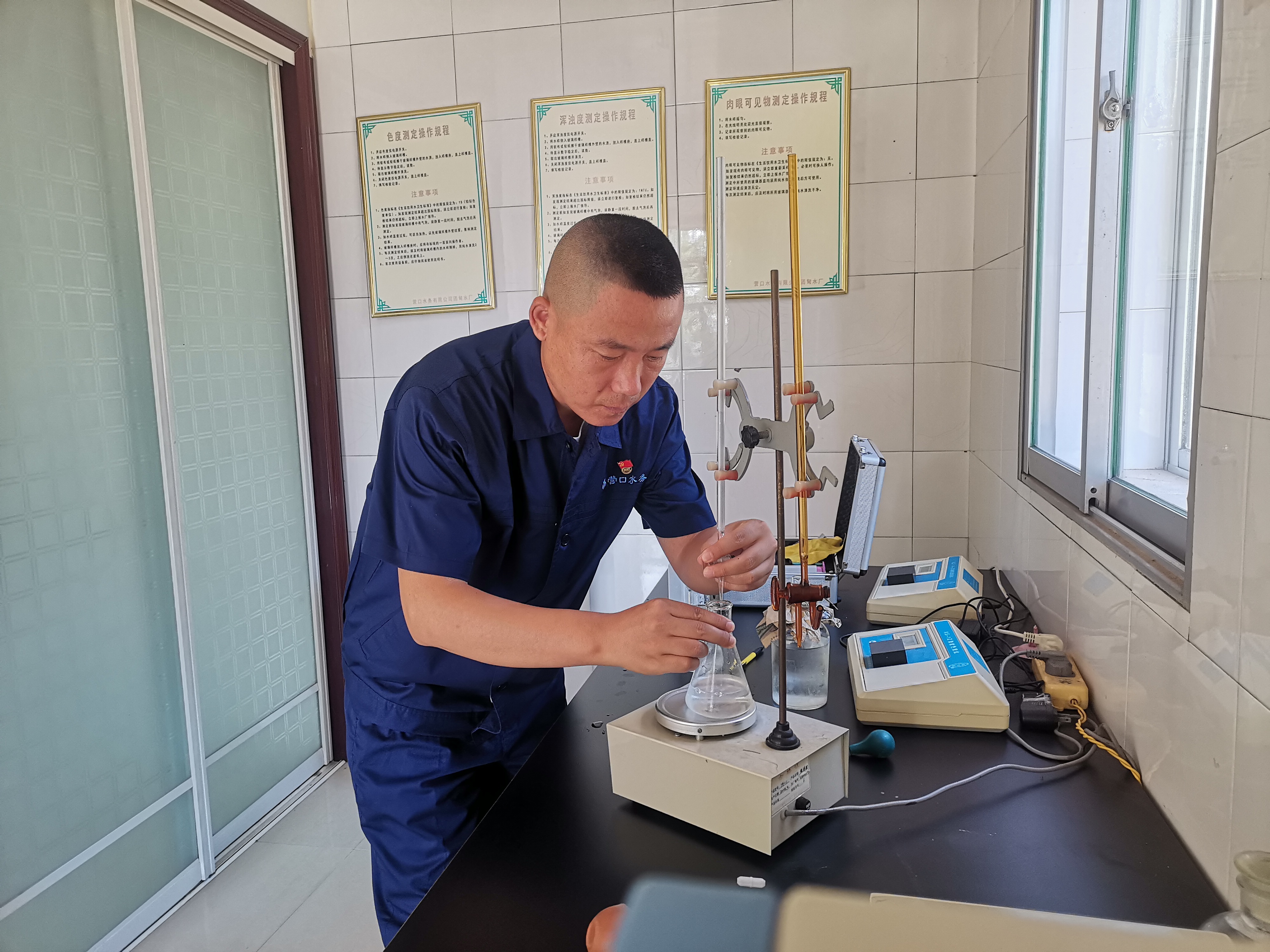 “工作著我好幸?!?,路南水廠運轉凈化班大班長王健這樣評價他的工作。作為一名從事供水工作三十多年的老黨員,他將每一次工作任務都視為一個新的開始,一段新的體驗。在設備日常管理中,針對設備老化情況,他堅持做到“檢查及時,保養(yǎng)到位,維修合格,記錄準確”;在維修上不斷進行技術培訓和經驗交流,提高維修的質量和水平;在安全上,他每周對班組成員進行各類應急預案演練,使安全生產得到了極大的保障。他不僅是一個實干堅守者,還是一個開拓創(chuàng)新人。針對攔截消殺控制,他帶領凈化班組人員加工攔截濾網,經多次改進、調試,攔截效果顯著提升,現4個系列24個攔截濾網全部安裝完畢,進一步保證了水質安全。他始終為“優(yōu)質、穩(wěn)定、高效”供水而堅守奮斗,在激情的奮斗中綻放共產黨員的光芒。