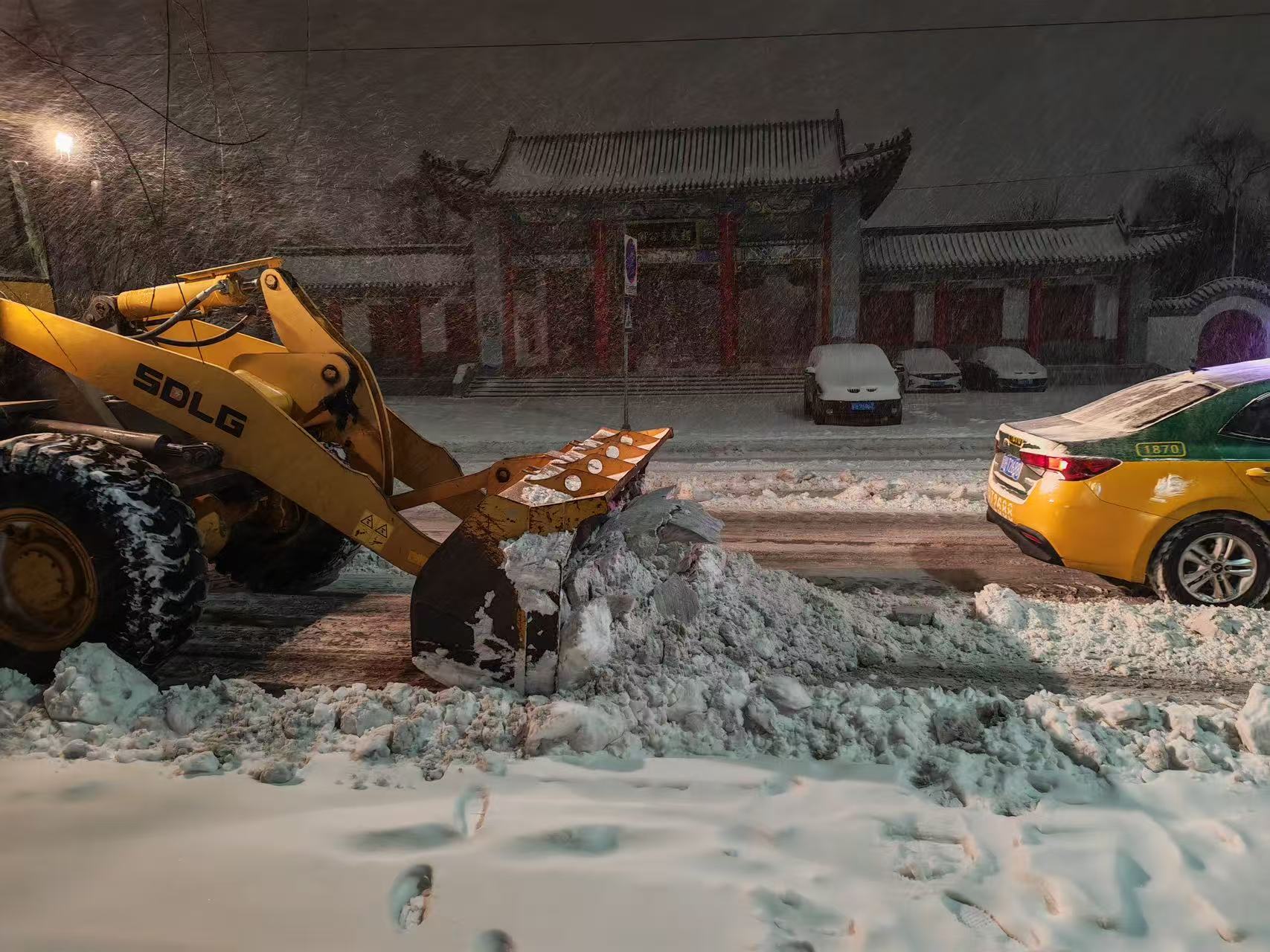 雪情就是命令,保障即是責(zé)任。集團(tuán)組建80余人的應(yīng)急清雪隊(duì)伍,調(diào)配推雪鏟車8臺(tái),裝雪鏟車2臺(tái),運(yùn)雪車8臺(tái),做好全流程準(zhǔn)備。凌晨3點(diǎn),天色未亮、寒風(fēng)料峭,清雪隊(duì)伍已全員集結(jié)、整裝出發(fā)。機(jī)械鏟車開道破冰,人工隊(duì)伍跟進(jìn)清掃,人機(jī)協(xié)同高效作業(yè),從新興大街東新路口到西環(huán)路口全力清除積雪,為市民出行掃清障礙。