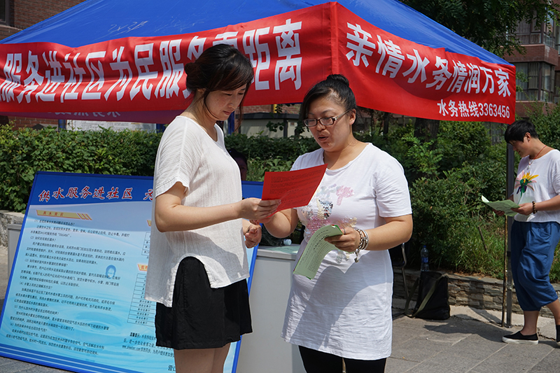 下半年,水務(wù)集團(tuán)“供水服務(wù)進(jìn)社區(qū)、為民服務(wù)零距離”活動集中進(jìn)社區(qū)活動,還將再分2次走進(jìn)轄區(qū)其他16個成型小區(qū)及社區(qū)街道,通過開設(shè)咨詢臺現(xiàn)場受理用戶訴求;發(fā)放意見書向用戶征求供水服務(wù)意見建議;張貼發(fā)放供水常識宣傳單等多種形式,開展便民服務(wù)活動,同時,開展對活動區(qū)域用戶有水量異議的,可實施水表校驗和戶內(nèi)暗漏協(xié)助檢查服務(wù)及做好便民維修和代收水費等其他服務(wù)。