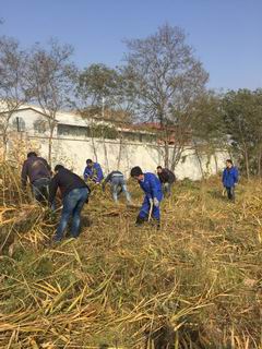 第五水廠是水務集團較大的水廠之一,主要承擔西部工業(yè)水的運行輸送工作。因地形特殊,清水池綠化帶、林木周邊、防護電網(wǎng)等許多位置不適合機械除草,約有4萬平方米的雜草需人工處理。1014下午13,水務集團全體班子成員和來自機關部室、基層單位的240余名男職工戴著手套、拿著鐮刀,迅速地投入到事先分配好的20個勞動區(qū)域中開展勞動。水廠院內(nèi)地上的雜草以蘆葦和蒿草為主,足有一人多高,已被秋風吹得干枯發(fā)黃,不易清除。領導班子成員身先士卒,帶頭示范,鼓舞了志愿者們的志氣,許多志愿者的手上都磨出了水泡或被雜草劃傷,但是大家毫無怨言,發(fā)揚特別能吃苦、特別能戰(zhàn)斗的精神,忍痛堅持到了最后。經(jīng)過全體志愿者的共同努力,經(jīng)過4小時連續(xù)奮戰(zhàn),4萬平方米的雜草全面清除干凈,同時對雜草中的白色垃圾進行了集中清理,廠區(qū)環(huán)境衛(wèi)生得到了明顯改善??粗鍧嵭l(wèi)生的水廠,志愿者們的心里洋溢著自豪感和成就感,同時也享受到了勞動的光榮與快樂。