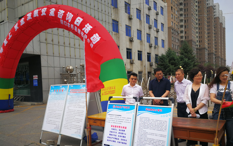 6月16,安全生產(chǎn)宣傳咨詢?nèi)债?dāng)天,水務(wù)集團(tuán)在門前設(shè)置了宣傳咨詢臺(tái),設(shè)立“生命至上、安全發(fā)展”主題彩虹門,擺放涵蓋“安全生產(chǎn)重要性”和安全用水知識(shí)宣傳板,集團(tuán)公司領(lǐng)導(dǎo)高度重視,董事長、總經(jīng)理、黨委副書記王霄、分管安全生產(chǎn)副總經(jīng)理姜義營等領(lǐng)導(dǎo)親自參與宣傳活動(dòng),安全生產(chǎn)、法規(guī)保衛(wèi)、水質(zhì)管理、人力資源、工會(huì)、宣傳等相關(guān)部門干部職工向市民發(fā)放安全用水小常識(shí)宣傳單 500余張,現(xiàn)場(chǎng)安全、水質(zhì)等部門專業(yè)人員向市民宣傳和講解安全用水知識(shí),為市民答疑釋惑問題23個(gè)。